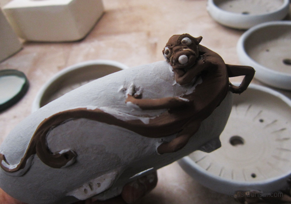 Glazing the dragon pots