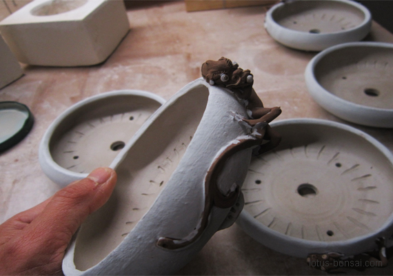 Glazing the dragon pots
